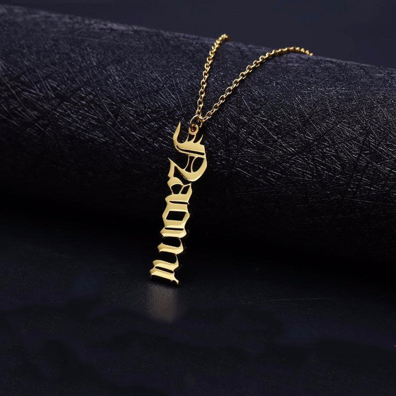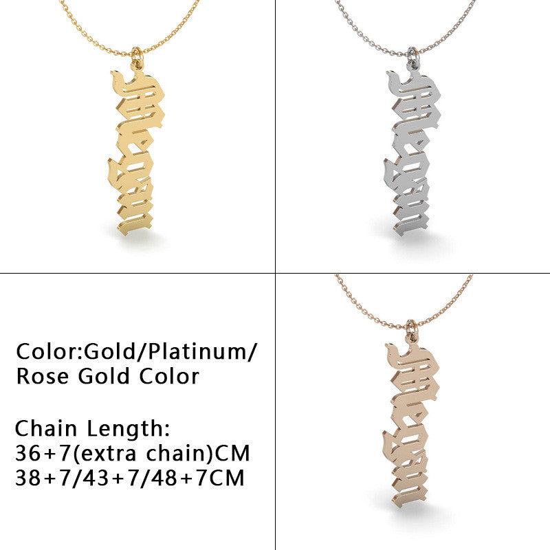 Vertical Name Necklace Ancient English Necklace Pendant Lock