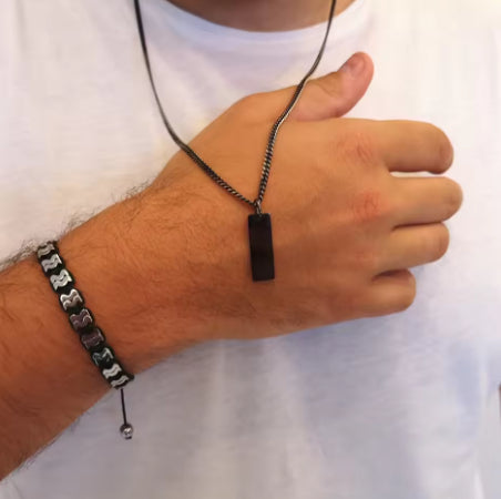 Custom Minimal Bar Name Necklace Engraved Text Pendant Couples Jewelry