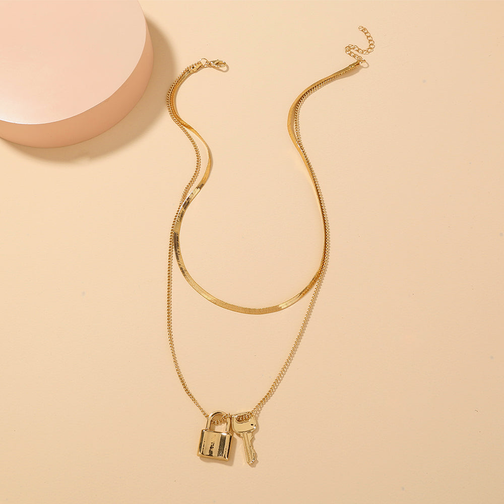 Multi-layer Valentine Lock Necklace, personalized metal diy multi-layer necklace, cross-border jewelry woman